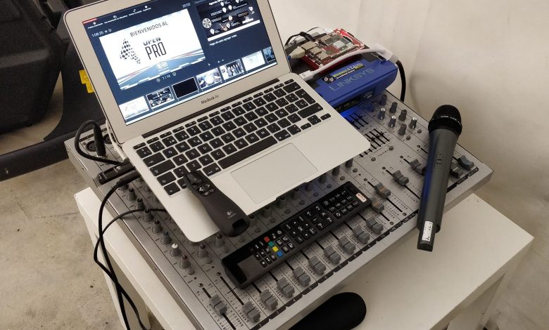 Un sistema de sonido de 1600W de potencia con múltiples entradas simultáneas para música y micrófonos. De esta manera podemos dar continuidad de una carrera a otra con música.
